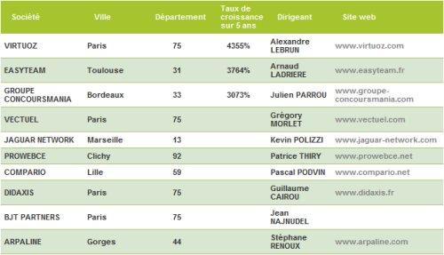 Le Prix Fast 5 récompense les 3 premières sociétés du Palmarès parmi les entreprises ayant réalisé plus de 10M€ de CA en 2005, le palmarès 2010 annoncé est le suivant :