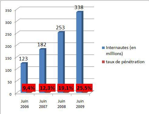 A la fin du mois du mois de juin 2009, la Chine totalisait 338 millions d'internautes.