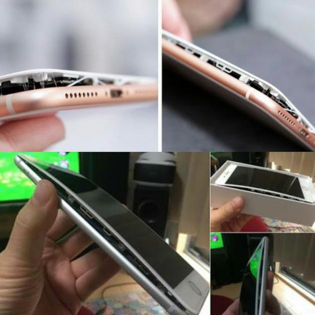Les batteries de l'iPhone 8 semble connaitre un problème similaire. Si ce problème ne provoque pas d'incendie, il provoque un gonflement des batteries lors de la charge (ou peut-être même simplement dans leur boîte, sans être en charge selon les photos ci-dessous publiées sur Twitter). La batterie étant très à l'étroit de la coque, le gonflement de la première provoque la rupture de la seconde, avec décollement de l'écran pour faire bonne mesure.