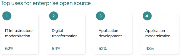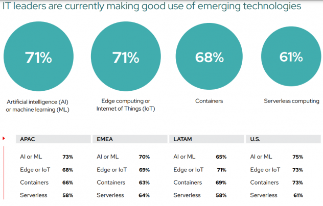 Selon l'étude Red Hat , 80 % des responsables informatiques prévoient d'augmenter leur utilisation de l'open source d'entreprise logiciels pour ces technologies émergentes.