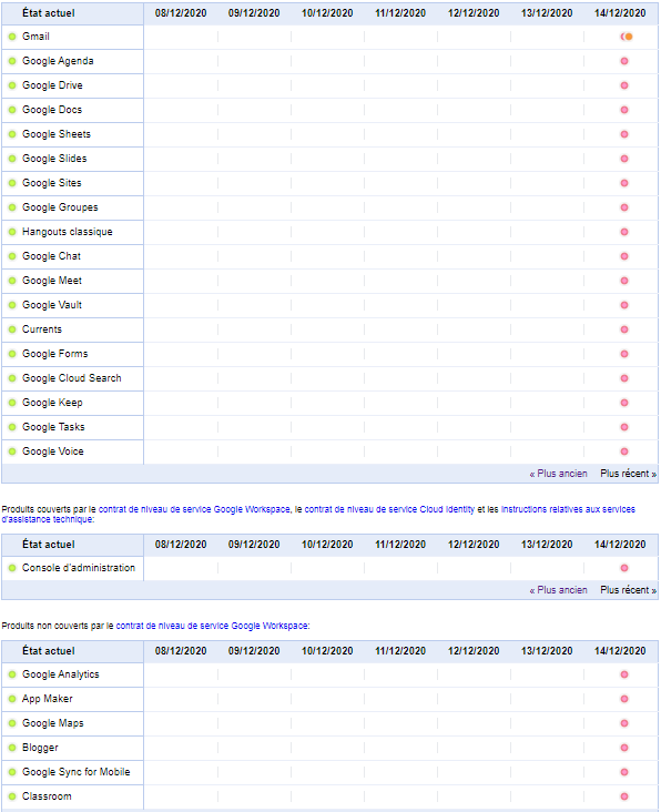 Ce lundi 14 décembre 2020, Google a connu une panne mondiale qui affecté tous ses principaux services : Gmail, YouTube, Google Analytics, Google Docs, Google Maps, Google Drive, etc. Le moteur de recherche, quant à lui, ne semble pas avoir été touché.