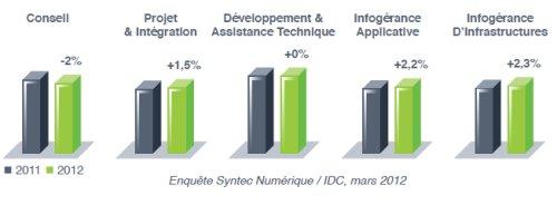 Toutefois, Le secteur devrait continuer à répondre aux besoins de rationalisation et de développement des entreprises, illustration que le numérique est dorénavant un actif stratégique, vecteur de productivité, de compétitivité, de performance et d’innovation, a expliqué Syntec Numérique dans sa conférence de presse du 5 avril 2012.
