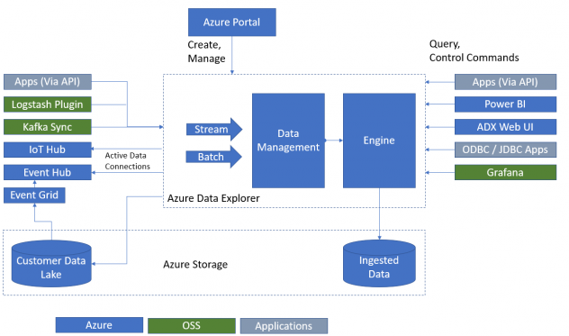 Azure Data Explorer (ADX) est un service d'analyse de données entièrement géré couçu pour l'analyse en temps réel de grands volumes de données en continu. ADX est capable d'interroger un milliard d'enregistrements en moins d'une seconde sans modification des données ou métadonnées requises. ADX inclut également des connecteurs natifs vers Azure Data Lake Storage, Azure SQL Data Warehouse et Power BI, ainsi qu'un langage de requête.