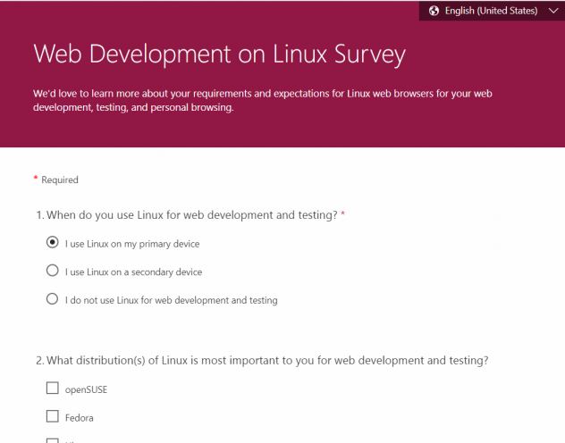 L'équipe réunit les conditions requises pour amener Edge à Linux et nous avons besoin de votre aide pour formuler certaines hypothèses. Si vous êtes un développeur qui utilise Linux pour le développement les tests ou la navigation personnelle, participez à ce sondage.