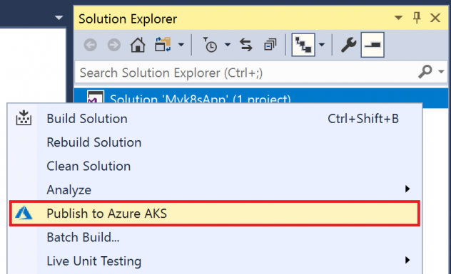 Les utilisateurs d'Azure Kubernetes Service peuvent également se déployer sur un cluster AKS directement à partir de Visual Studio via la nouvelle option "Publier vers Azure AKS".
