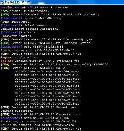 Mise en route du Bluetooth avec la carte Intel Edison
