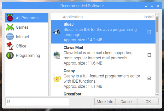 Afin d'alléger la distribution, celle-ci vient désormais avec un outils de gestion des applications recommandées, ce qui permet à l'utilisateur de n'installer avec quelques clics que ce dont il a besoin.