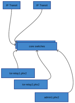 Le matériel utilisé par la fondation est du matériel recyclé, mais très largement suffisant pour le propos. En effet, les serveurs offrent une architecture redondée de 2 x 10 Gbit/s de bande passante. Grâce à la redondance, cette architecture est tolérante aux pannes. Elle permet la maintenance avec arrêt total d'un noeud sans perte de trafic. Dans le cas de figure le pire qui soit, 50% du trafic restent assurés.