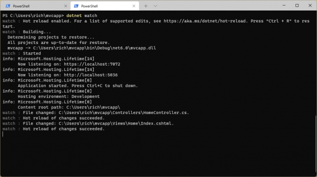 Ainsi que l'avait annoncé Scott Hunter fin octobre afin de répondre au mécontentement de la communauté open source, Hot Reload est accessible non seulement via Visual Studio 2022 mais aussi via l'outil CLI dotnet watch. Vous pouvez utiliser Hot Reload avec une grande variété de types d'applications tels que ASP.NET Core, Blazor, .NET MAUI, Console, Windows Forms (WinForms), WPF, WinUI 3, Azure Functions et autres.