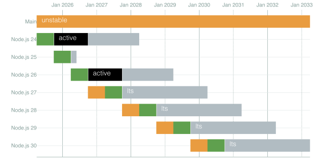 - plus de distinctions entre version paire et version impaire : Node 27 sera une version LTS