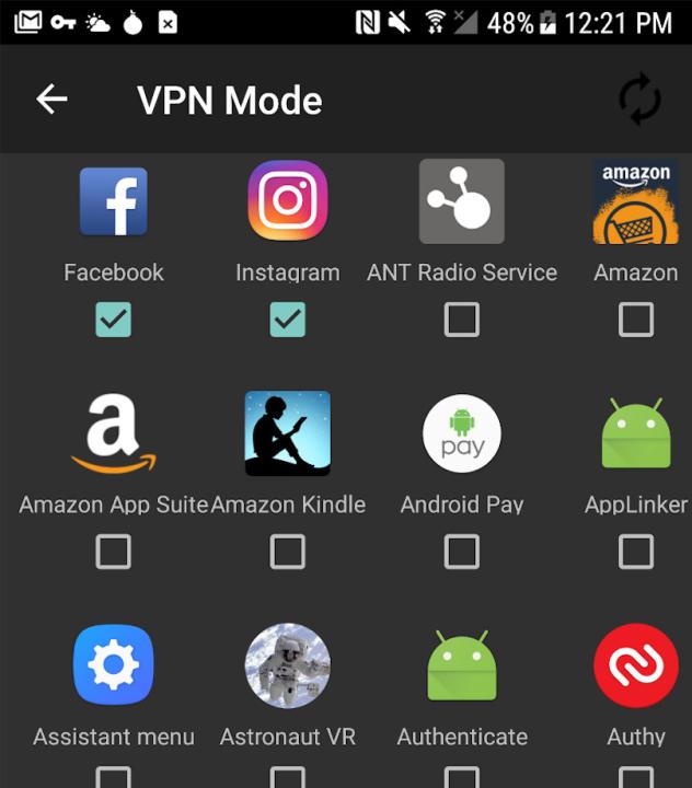 Orbot permet de choisir spécifiquement les applications à acheminer via Tor.