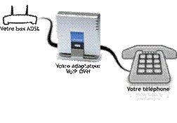 - un adaptateur VoIP (Linksys PAP2T) que le client connecte sur sa BOX