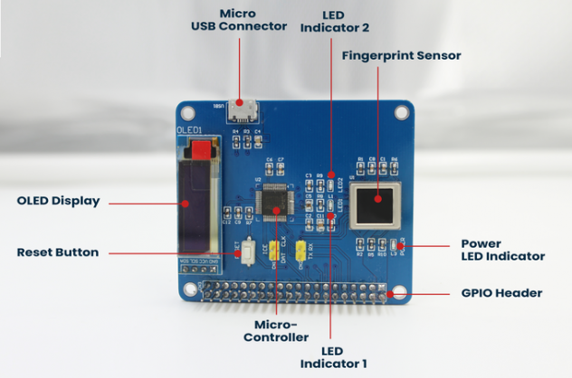 La Raspberry Pi propose de multiples cartes d’extension, les fameuses HAT. Une des dernières initiatives est la PiFinger. Elle inclut un capteur d’empreinte, un MCU (pour les traitement), un connecteur micro-USB, le RESET et un mini OLED. Le MCU inclut des fonctions de cryptographie. L’interface de communication entre MCU et le capteur se fait en SPI.
