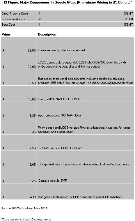 Mais les Google Glass étant des objets matériels, il est possible d'estimer leur prix de revient. C'est ce qu'a fait Teardown au début de ce mois, pour conclure que ce prix de revient est d'un peu moins de 80 dolllars.