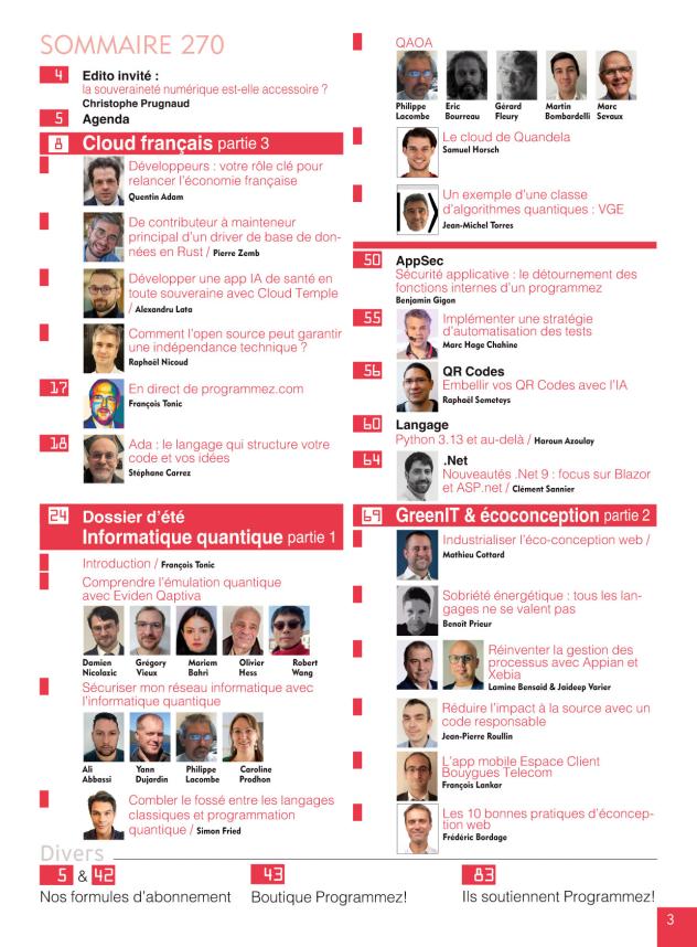 Sommaire complet : https://www.programmez.com/magazine-papier/programmez-270
