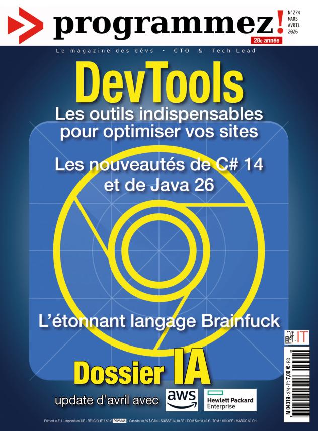 Sommaire complet et pour le commander : https://www.programmez.com/magazine-papier/programmez-274