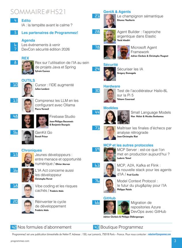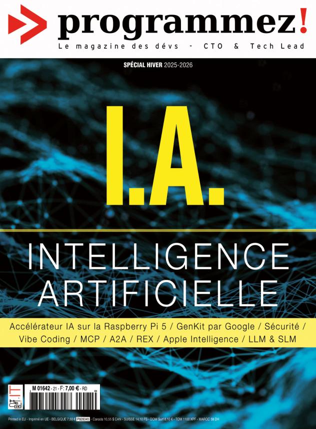Ce numéro est disponible en kiosque, sur abonnement, en version papier et en PDF : https://www.programmez.com/magazine-papier/programmez-hors-serie-21