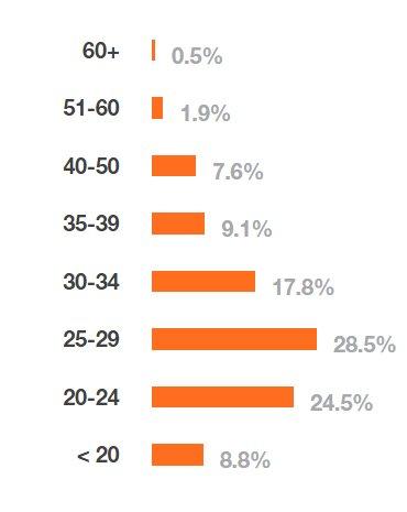 Les développeurs sont jeunes, majoritairement. La moyenne d'âge est de 28.9 ans. Le développeur type est né en avril 1986, juste au moment où IBM sortait la première puce capable de stocker un million de bits d'informations. Les développeurs les plus âgés, si l'on peut dire, se situent aux Etats-Unis, avec une moyenne d'âge de 31.6 ans. Les plus jeunes en Inde avec une moyenne de 25 ans. En France, la moyenne est de 28.6 ans.