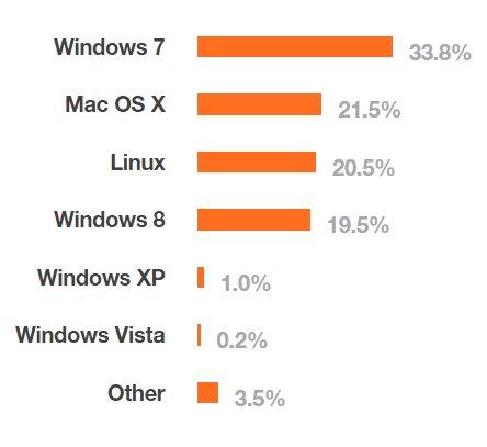 Il n'y a pas que Satya Nadella qui aime Linux, Les développeurs l'aiment aussi. Alors que Linux n'est présent que sur 1.5% des ordinateurs de bureau, le pourcentage grimpe à 20.5% chez les développeurs. La distribution la plus prisée par eux est Ubuntu.