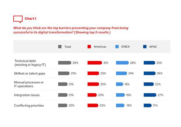 Red Hat publie les résultats de la 10ème édition de son étude annuelle Global Tech Trends. Comme lors des années précédentes, cette enquête analyse les données obtenues sur l’état d’avancement des initiatives de transformation numérique des entreprises, leurs priorités de financement dans le domaine de l’IT (ou autres), ainsi que l’état du cloud.
