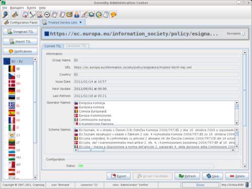 Cryptolog annonce la sortie de la version 2.6 de Serenity, son serveur de validation avancée de signature électronique. La nouveauté majeure de cette version est l'intégration des Trust-service Status List (TSL) au sein du moteur de validation et de l'interface d'administration de Serenity.