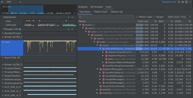 En ce qui concerne le profilage, les enregistrements CPU sont désormais séparés de la chronologie principale du profileur et organisés en groupes pour permettre une analyse plus facile. Vous pouvez déplacer des groupes vers le haut ou vers le bas ou faire glisser et déposer des éléments individuels au sein d'un groupe pour une personnalisation supplémentaire. Pour une analyse côte à côte plus facile, vous pouvez désormais afficher toutes les activités de thread dans la chronologie des activités de thread (y compris les méthodes, les fonctions et les événements) et essayer de nouveaux raccourcis de navigation pour vous déplacer facilement dans les données.