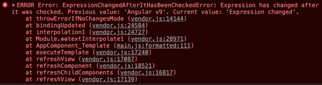 Ivy promet également une meilleure expérience de débogage, notamment grâce à une amélioration de la trace de la pile. Auparavant, celle-ci pouvait être inutile, par exemple lorsqu'il s'agissait de déboguer un problème lié à ExpressionChangedAfterItHasBeenCheckedError: