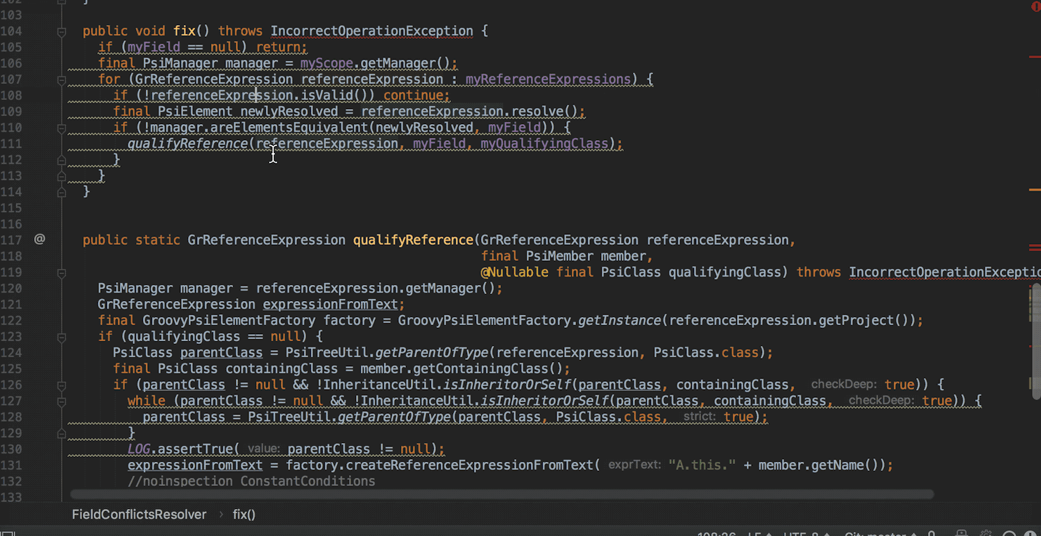 Le détecteur de doublon de code a été amélioré. Plus rapide, il permet aussi de détecter des doublons dans des cas plus complexes, même avec des noms de variables différents. Pour que les doublons détectés soient plus facilement comparables par le développeur, l'éditeur les affiche désormais côte-à-côte dans une fenêtre.