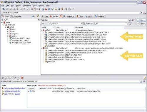 Avec la nouvelle fonctionnalité de Shelving les développeurs peuvent mettre les fichiers modifiés en cache sur le serveur Perforce sans avoir à les enregistrer au préalable en tant que changement versionné.