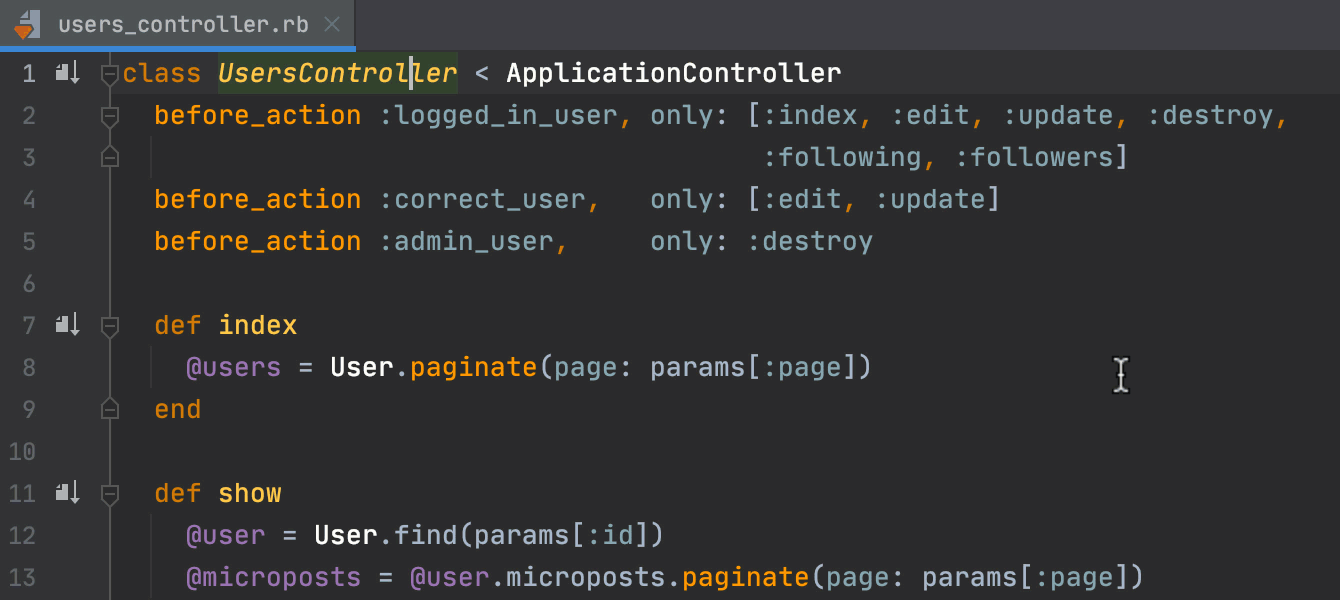 En ce qui concerne le travail avec Rails, JetBrains a simplifié l'utilisation de routes.rb. Une combinaison de touches permet de naviguer entre une route dans routes.rb et ses modèles, vues et contrôleurs associés. Une autre combinaison de touches appliquée sur une méthode dans routes.rb permet d'accéder directement à la méthode associée dans un contrôleur.