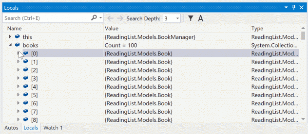 Identifier des objets par leurs propriétés lors du débogage est maintenant devenu plus facile grâce au nouvel outil 'Pinnable Properties'. Avec lui, il suffit de survoler une propriété que vous souhaitez afficher dans la fenêtre de débogage des fenêtres Watch, Autos et Locals, vous cliquez alors sur l'icône 'épingle' de cette propriété et voyez immédiatement les informations que vous recherchez en haut de la fenêtre de débogage.
