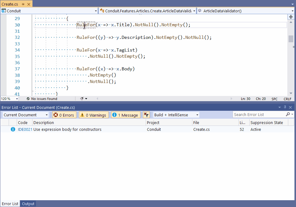 Lorsque vous vouez trouver les membres d'un type, vous risquez de ne pas y parvenir lorsqu'il vous manque une directive Using. Dans Visual Studio 2019 16.4 16.4, IntelliSense affiche les membres et les types de tous les assemblys référencés à partir de votre projet et ajoute automatiquement la directive Using pour que votre code soit net et ordonné. Par ailleurs IntelliCode vous fait gagner du temps en plaçant ce que vous êtes le plus susceptible d'utiliser en haut de votre liste d'achèvement IntelliSense. IntelliCode peut également suggérer des arguments lors de la frappe, en plaçant les arguments les plus probables en tête de votre liste d'achèvement.