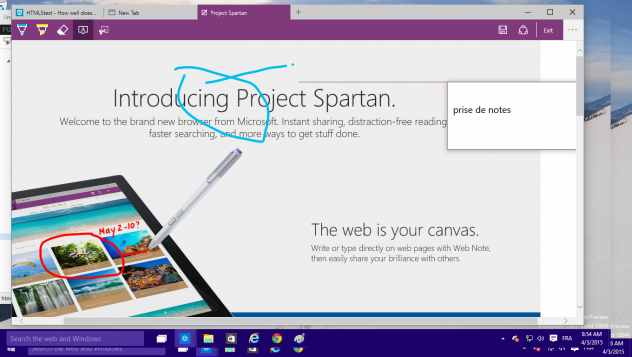 Spartan promet une expérience utilisateur très souple en permettant les annotations, la prise de note et l’utilisation de Cortana. Les principaux paramètres sont immédiatement disponibles. La prise de notes (web note) est très rapide et pratique ! On peut sélectionner et copier des morceaux de pages web. Là aussi très pratique à l’usage. Le design de la fonction mériterait d’être revu pour être moins massif à l’écran. Pour le reste, je suis déjà adepte !