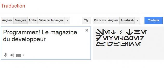 Aujourd'hui, Google Translate transcrit vos saisies en Aurebesh :