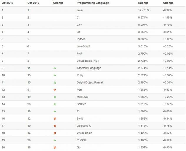 Ceci selon l'index TIOBE qu'il convient de relativiser, voire de prendre avec des pincettes, mais qui est malgré tout souvent le reflet d'une tendance. L'index TIOBE est un classement qui est établi en se basant sur les résultats renvoyés par les moteurs de recherche lorsqu'on leur soumet des noms de langages de programmation. Le nombre de pages remontées par les recherches, notamment, sert à calculer l'index. Il faut le relativiser car on peut parler beaucoup d'un langage sur Internet parce que son utilisation est un passage obligé, parce qu'il pose des difficultés lorsqu'on travaille avec, etc. Il serait peut-être plus exact de dire que TIOBE donne un reflet de l'activité autour d'un langage.