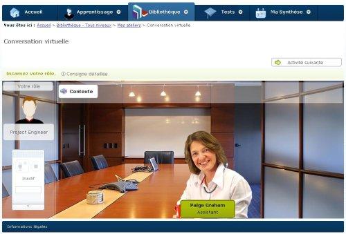 TELL ME MORE Pro est une plateforme d’apprentissage des langues :Appelée « conversation virtuelle ».  L’activité débute par une mise en situation et expose le contexte de la conversation notamment le rôle et l’objectif poursuivi par chaque personnage. Cette prise d’indices permet à l’apprenant de préparer des réponses adaptées à un contexte précis, suivant en cela une approche actionnelle de la langue.