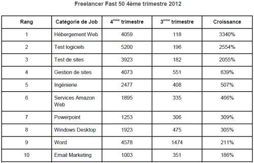 Freelancer.com a publié le Freelancer Fast 50 pour le 4ème trimestre 2012, traquant toutes les tendances du marché des jobs en ligne.