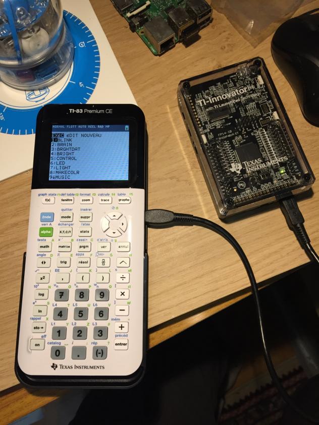 La carte est dérivée de la plateforme matériel TI LaunchPad, modèle MSP-EXP432P401R-ET, architecturé autour d’un ARM Cortex. Elle possède 3 entrées, 3 sorties, un connecteur I2C, au format bien connu des connecteurs Grove. Par défaut, elle embarque un capteur de luminosité, une led RGB, une led rouge, un haut-parleur. En classe, l’élève pourra utiliser une calculatrice de type TI-83 ou 84. Le hub se relie à la calculatrice avec un câble, qui fournit l’alimentation de la carte. Les derniers modèles embarquent un système incorporant l’app Hub et plusieurs exemples de codes. Il est aussi possible d’utiliser un PC Windows ou un Mac pour coder le Hub, via le logiciel TI-Nspire CX Technology. Ce logiciel n’est malheureusement pas gratuit. Espérons que d’autres IDE seront compatibles rapidement. Pour le développement, on utilisera le TI Basic, sur la calculatrice, et du LUA sur son ordinateur. Le tarif est assez intéressant : 70 $. Des kits, contenant des capteurs, sont proposés par TI à 35 $.