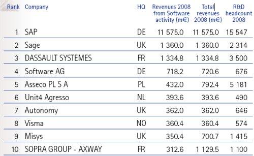 Le top 10 des éditeurs de européens de logiciels