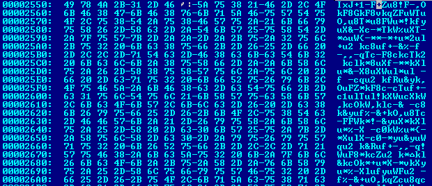Celle-ci est un faux fichier PDF, mais un vrai programme Visual Basic malveillant. Le code est obfusqué sur plusieurs niveaux et il contient des nom de variables rigolos. Il finit par installer un botnet de type Zbot sur la machine attaquée. Le malware a pour vocation, outre l'intégration à un botnet, des subtiliser des données comme les mots de passe, les identifiants bancaires, etc.