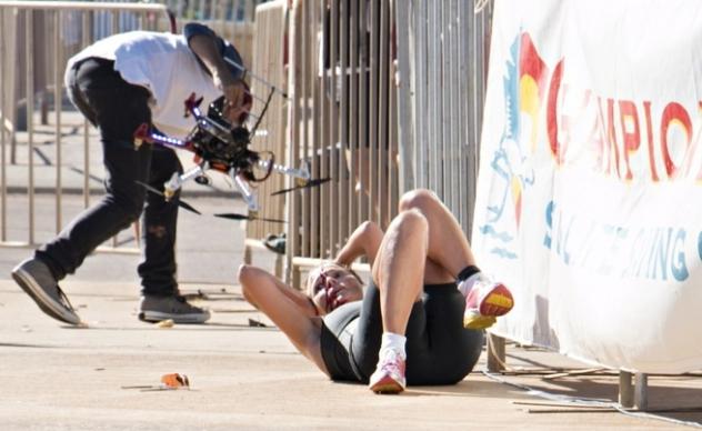 Dimanche,   Raija Ogden, une participante à un triathlon à Geraldton, sur la côte ouest de l’Australie, a été frappée à la tête par l’appareil volant qui filmait la compétition. "J’ai des coupures à la tête et les secours ont retiré un morceau d’hélice de ma tête", a déclaré Raija Ogden, qui a dû être transportée à l’hôpital.