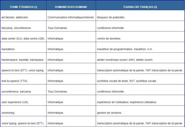 Désormais, la place de hackathon, il conviendra de dire marathon de programmation, datacenter on préférera centre de données et on parlera de gestion de versions plutôt que de versioning. Liste complète ci-dessous.