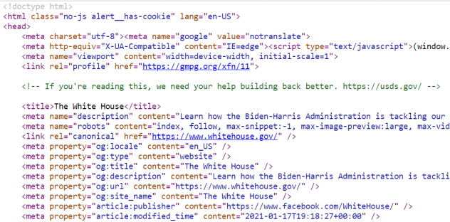 C'est maintenant le code source du site de la Maison Blanche qui est enrichi d'un oeuf de Pâques, ainsi que chacun peut le voir en se rendant à whitehouse.gov puis en demandant à son navigateur d'afficher le code source de la page.