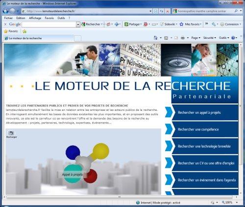 Créé par l’Agence Nationale de la Recherche, à l’initiative de Valérie Pécresse, ministre de l’Enseignement supérieur et de la Recherche, et en partenariat avec les principaux réseaux nationaux d’innovation, www.LeMoteurdelaRecherche.fr est un site gratuit qui interroge et agrège toutes les bases de données publiques pour répondre à toutes les questions que peuvent se poser les entreprises et les chercheurs concernant leurs projets de R&D.