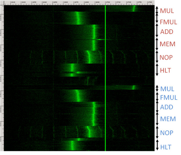 Les chercheurs ont créé un dispositif qui capte et analyse les ondes électromagnétiques émises par un ordinateur au travail. L'idée de base est la suivante : selon les instructions qu'il exécute, un microprocesseur n'émet pas les mêmes ondes électromagnétiques. En captant et analysant celles-ci, il est possible de déduire le code exécuté, et en l'occurrence, extraire des clés de cryptage.
