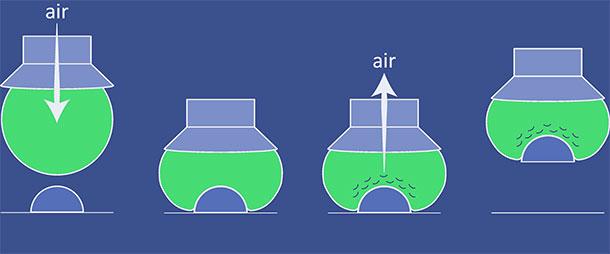 Pour la saisie d'un objet, de l'air est d'abord soufflé à intérieur de la boule pour ramollir celle-ci. Puis la boule est amenée au contact de l'objet à saisir dont elle épouse les forme. Enfin de l'air est inspiré, ce qui fait que la boule épouse les formes de l'objet.