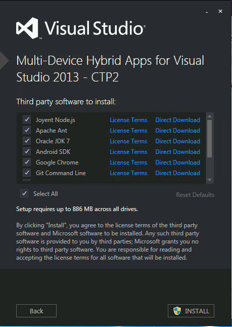 Visual Studio 2013, Azure SDK 2.4, Cordova...