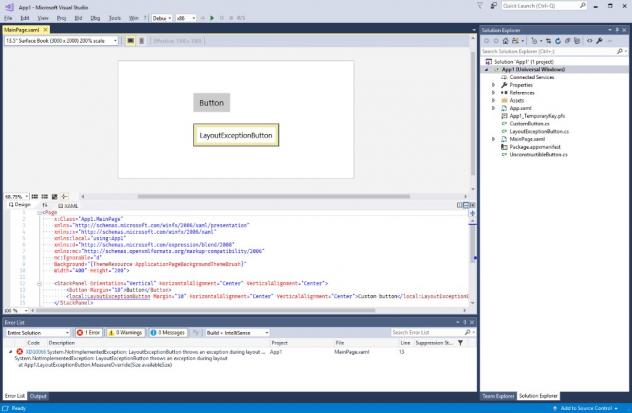En ce qui concerne les applications universelles, notamment, le concepteur UWP XAML est plus stable. Vous devriez remarquer moins de plantages. Spécialement quand le concepteur fait le rendu de contrôle qui lèvent des exceptions capturables, souligne Microsoft.