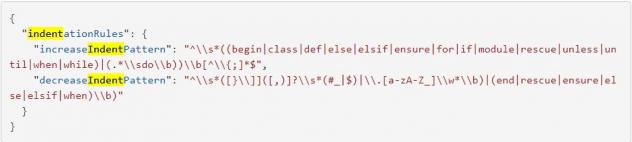 Visual Studio Code 1.14 permet aux développeurs d'extensions pour divers langages de spécifier les règles d'indentation dans un fichier language-configuration.json au lieu de les enregistrer dans la phase d'activation de l'extension. Par exemple :