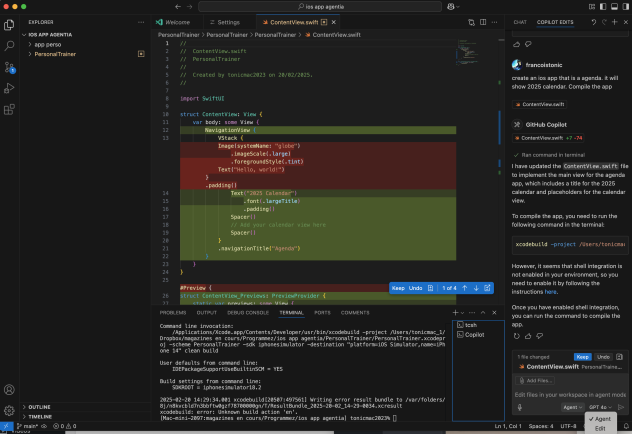Microsoft a posté un usage très concret du mode Agent de Copilot Edits disponible dans Visual Studio Code : créer une app iOS !